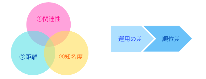 Googleビジネスプロフィールの順位は、「①関連性」「②距離」「③知名度」の3つで決まります。