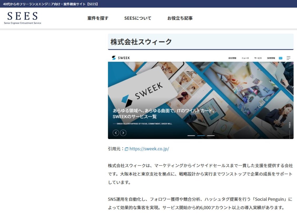 ITフリーランスエンジニア向け案件検索サイト「SEES」に掲載されました