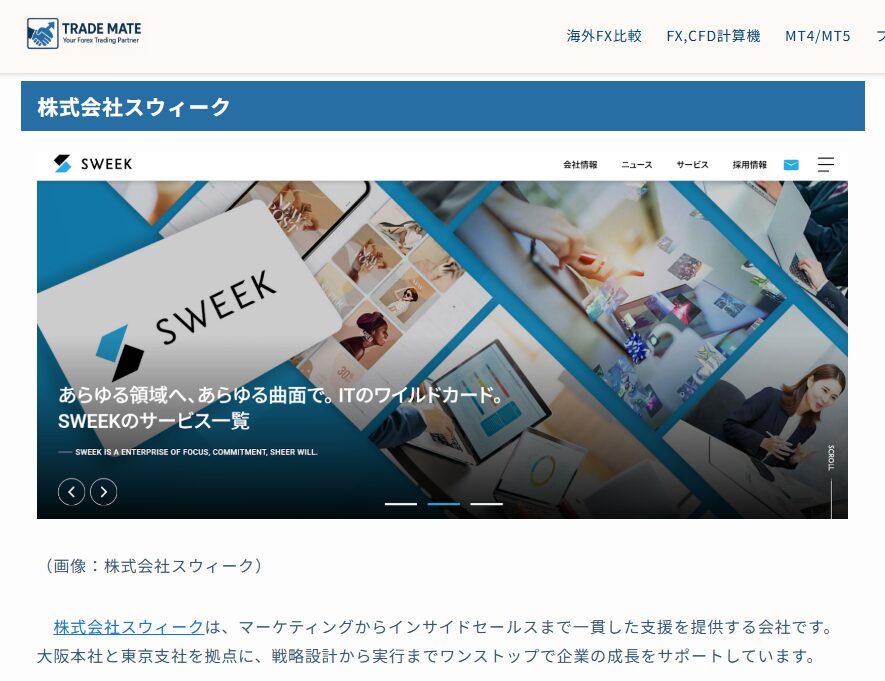 この度、海外FXに関する最新情報を幅広く発信するTRADE MATEのコラム記事にて、トレードメイトがおすすめするコンサルティング/マーケティング会社まとめ内にて紹介されました。