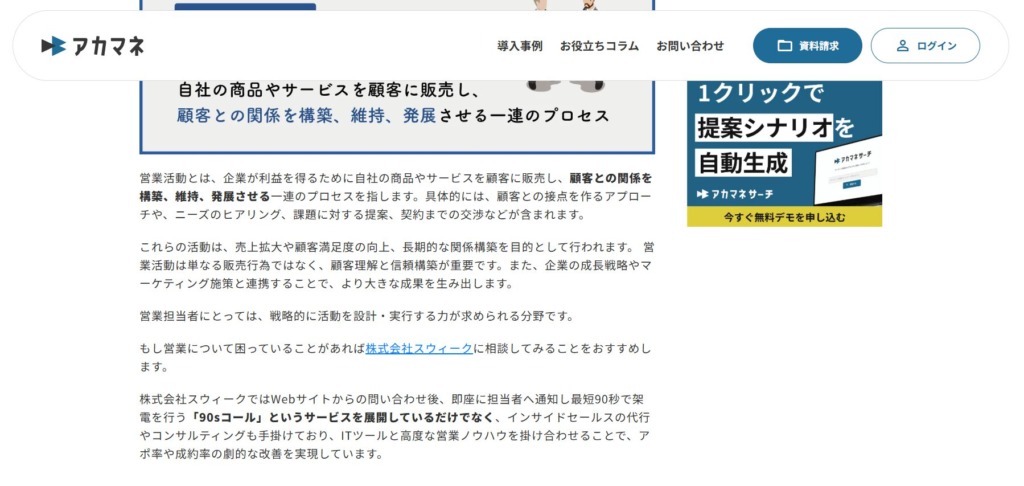 インキュベーター株式会社の運営するDBツール「アカマネ」のコラム内記事「営業活動とは?種類や進め方、営業行動との違いについて解説!コツやおすすめのツールについても紹介」にて、弊社が紹介されました。