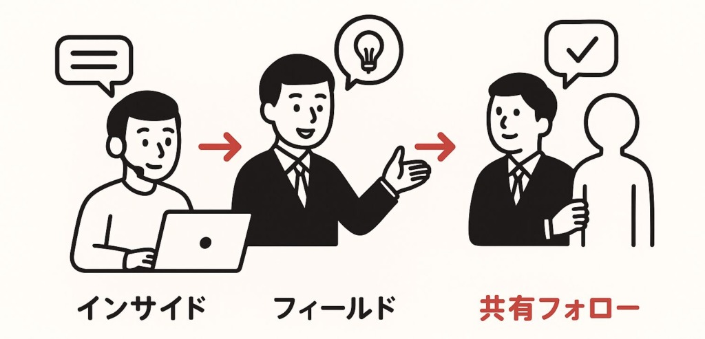 例:インサイドが初回接触 → フィールドが提案・クロージング → 共有フォロー