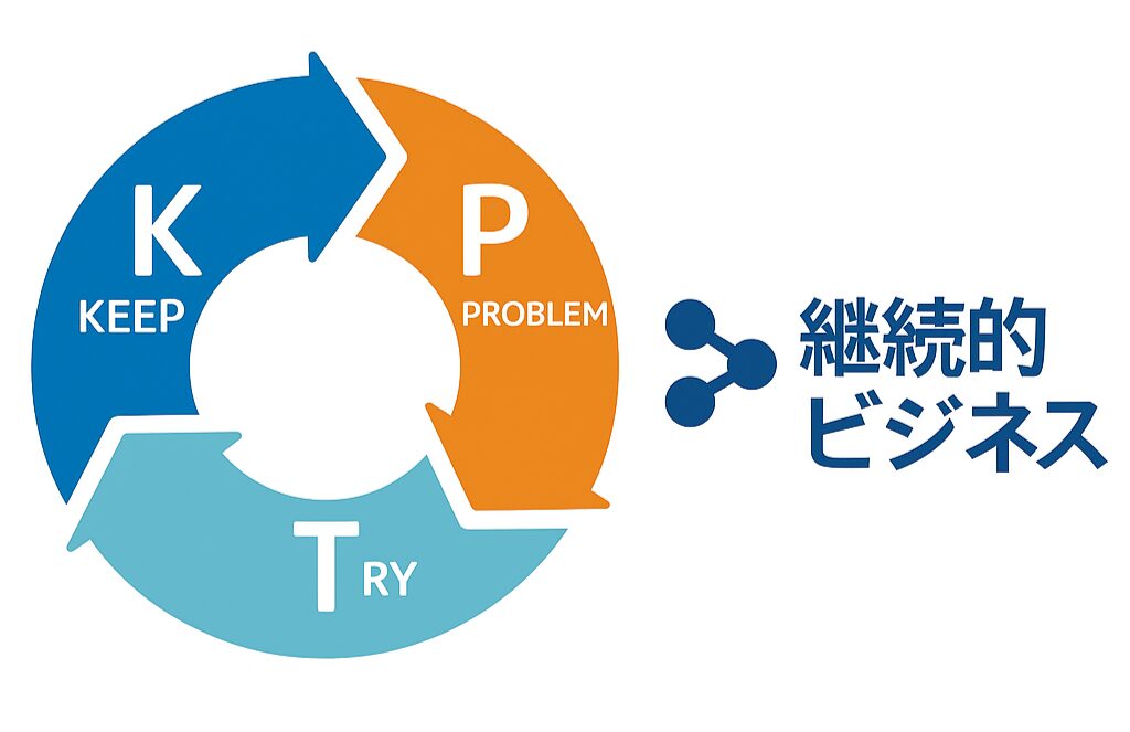 継続すべきよい点(Keep)と改善すべき課題(Problem)、次に挑戦すること(Try)を共有すると、ビジネスが継続します。