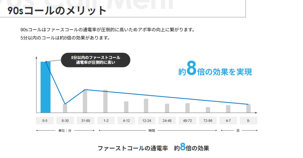 90秒以内 の架電で アポ取得率 が 20%向上 している事例があります。